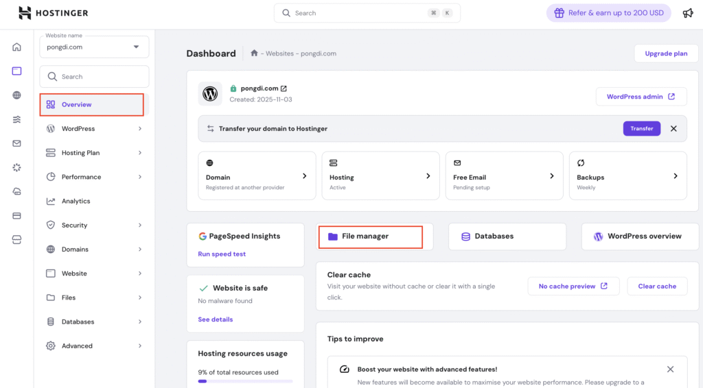 Hostinger에 HTML 인증 파일 업로드하는 방법