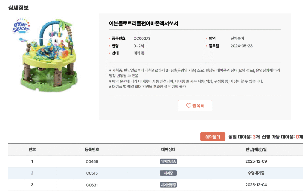 쏘서나 점퍼루 같은 금액대가 있고 자리를 많이 차지 하는 장난감을 빌려보고 싶었으나